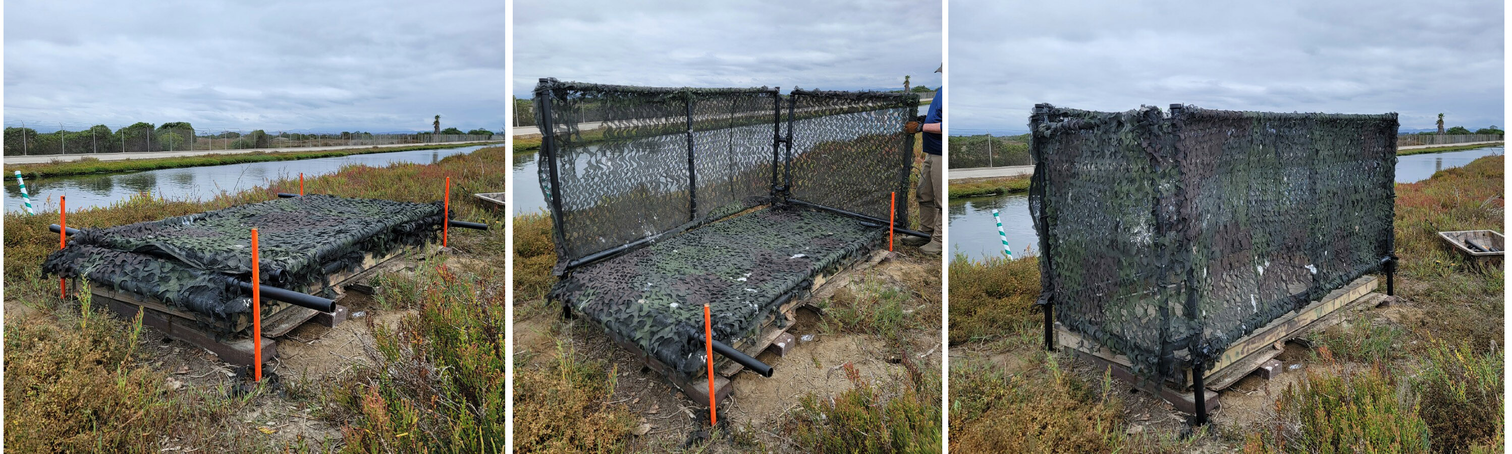 - PVC Frames with camo net attached need to be raised, tubes placed on orange posts and taken down after